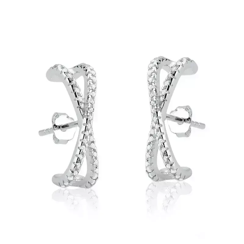 Brinco Ear Hook em Formato de X Todo Cravejado